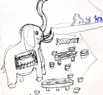 הפיל נהיה למרכז החברתי החדש לכול החבורות ברדיוס של קילומטרים, וכולם עברו שם בתדירות גבוהה והתחככו זו בזו. מר משה אגסי הנכבד היה יושב במרפסת מעל הכניסה לסטקיה שלו עם מכנסיים קצרות וגופיית סבא, משגיח על הסדר בעייפות של גיבור שכבר ראה הכול, ואם קיימת מקבילה אנושית לסיפור "הענק וגנו" שהיה חביב עלי בילדותי הרי שזה היה הוא, מר משה אגסי הנכבד, המלך של סטקית הפיל במרפסת שלו, זו שבנה לעצמו במו ידיו.
