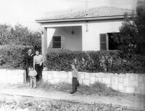 הבית ברחוב ברק 11 – עומדים בכניסה שי דליה וחני בן שנתים. כך בדיוק נראה הבית בפעם הראשונה שחזתה בו דליה אחר ערב כלולותיה שלוש שנים לפני כן. השנה היא שנת 1955 ובכניסה ניצבים דליה שי וחני בן השנתיים.