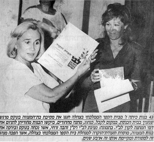 בששת הימים – זו הייתה השנה הראשונה לתלבושת האחידה. נכנסתי לכיתה כדי לדבר עם מורה בשם גאולה יצאתי מהכיתה ואמרתי לעצמי הילד הזה מוכר לי. לא זכרתי את בני בגלל התלבושת האחידה. הייתה אזעקה, כ-20-8 בוגרים חפרו שוחות. לא הספיקו לחפור אותם , הכנסנו את הילדים לחדרי המלאכה וחלק לאורך המסדרון המנהל ברוך אמר כל הזמן למורות, אל תדאגו למרות האזעקה, הכול יהיה בסדר.