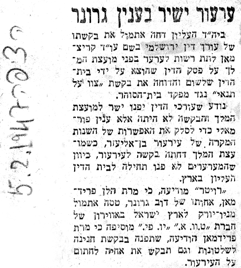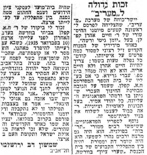 מאמר של שמשון דב ירושלמי, אביו של שי. 7.6.1962
